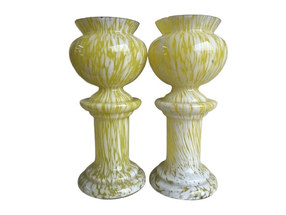 Pair of Yellow & White "Slag Glass" Vases