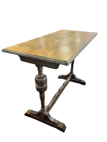 A vintage drop-leaf occasional table colonial reproduction style, likely from the 1970s or 80s. The carved detailing along the edge of the tabletop is a nice feature that adds value over a plain edge...