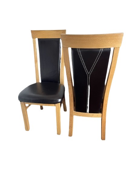 A pair of lovely oak and leather dining chairs in excellent condition.