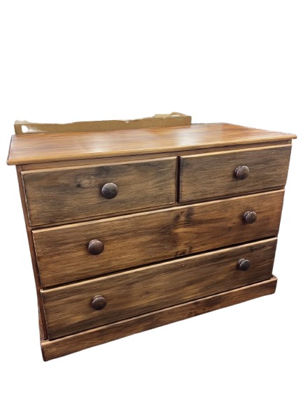 The bed base is constructed from solid New Zealand Rimu. This style, with its robust build and recessed circular drawer pulls, was very popular for locally made furniture in the 1980s and 1990s. This...