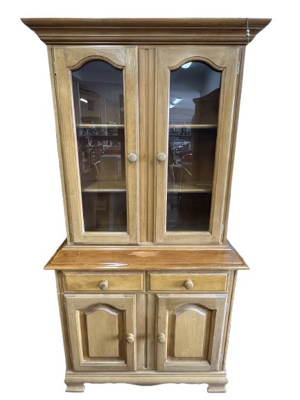 A charming solid pine hutch that brings warm, farmhouse vibes to any kitchen or dining area. The upper section features arched glass display doors perfect for crockery or glassware, while the base...